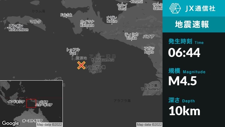 | 震源地 | インドネシアのTualから南東88kmの地点 |