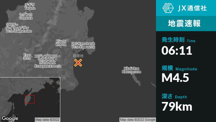 | 震源地 | ロシアのUst’-Kamchatsk Staryyから南南西58kmの地点 |
