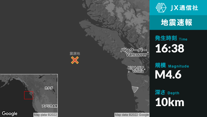 | 震源地 | カナダのTofinoから西205kmの地点 |