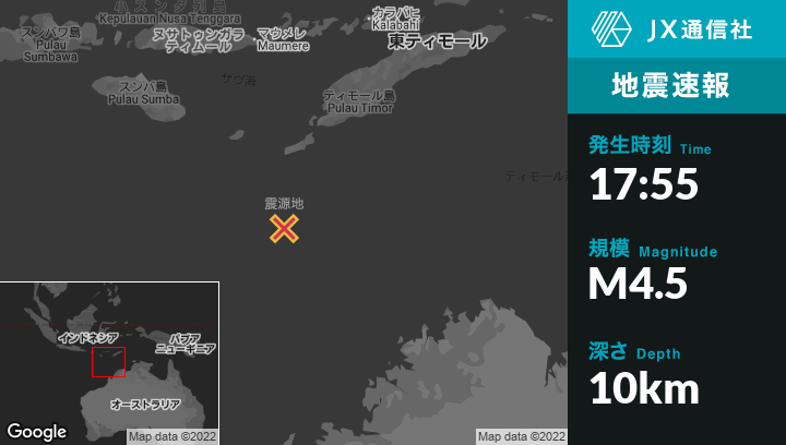 | 震源地 | インドネシアのKupangから南南西245kmの地点 |