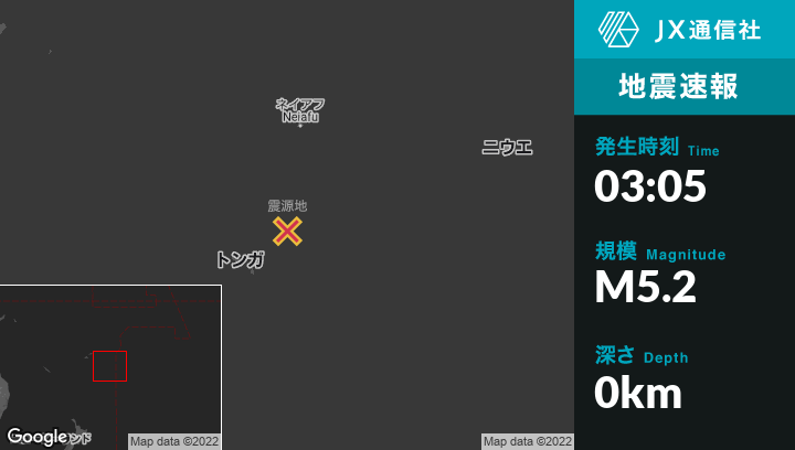 8月09日 03:05頃、トンガのPangaiから南78kmの地点でM5.2の地震がありました。