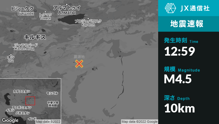 | 震源地 | 中国のKashgarから東北東165kmの地点 |