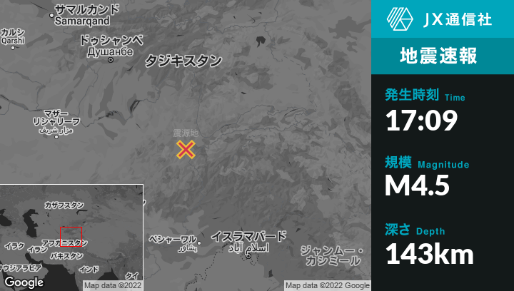 | 震源地 | アフガニスタンのAshkāshamから西南西44kmの地点 |