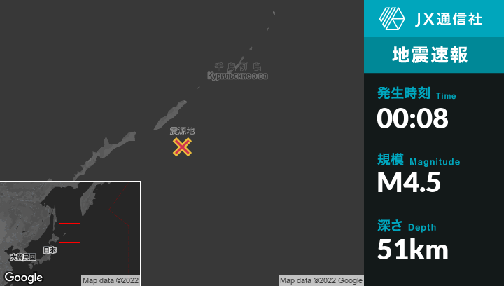 | 震源地 | ロシアのKuril’skから東192kmの地点 |