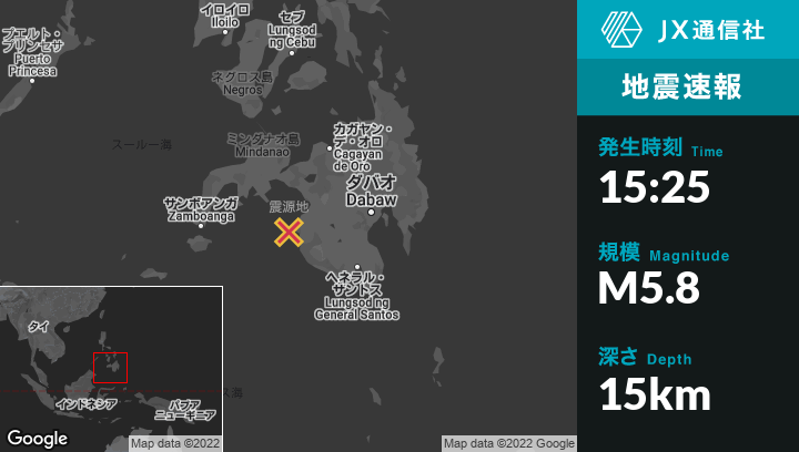| 震源地 | フィリピンのGadungから西北西25kmの地点 |