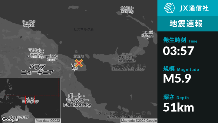 | 震源地 | パプアニューギニアのLaeから北北東82kmの地点 |