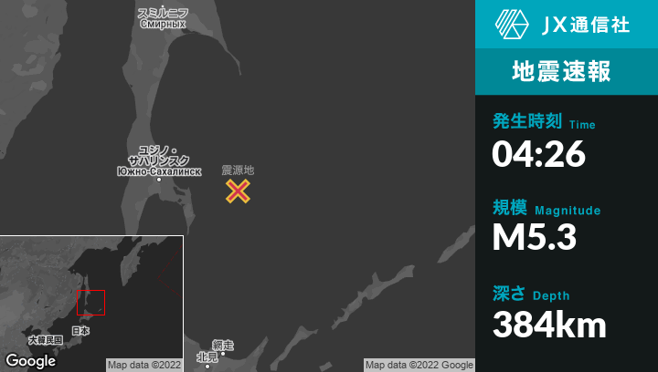 | 震源地 | ロシアのKorsakovから東144kmの地点 |