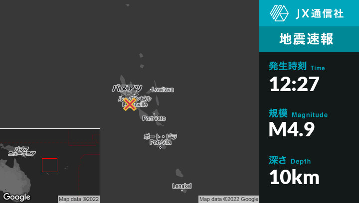 | 震源地 | バヌアツのLuganvilleから南西37kmの地点 |