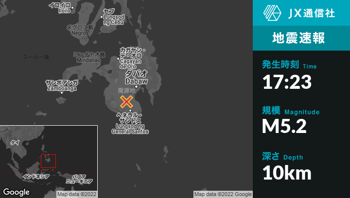 | 震源地 | フィリピンのTelafasから東北東3kmの地点 |