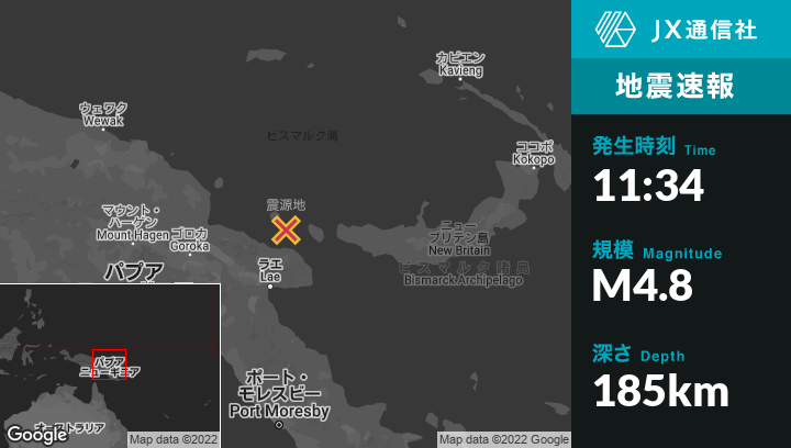 | 震源地 | パプアニューギニアのFinschhafenから北北西135kmの地点 |