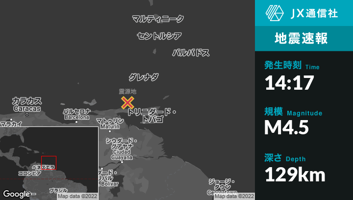 | 震源地 | ベネズエラのGüiriaから北59kmの地点 |