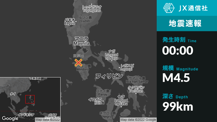 | 震源地 | フィリピンのTingloyから西南西13kmの地点 |