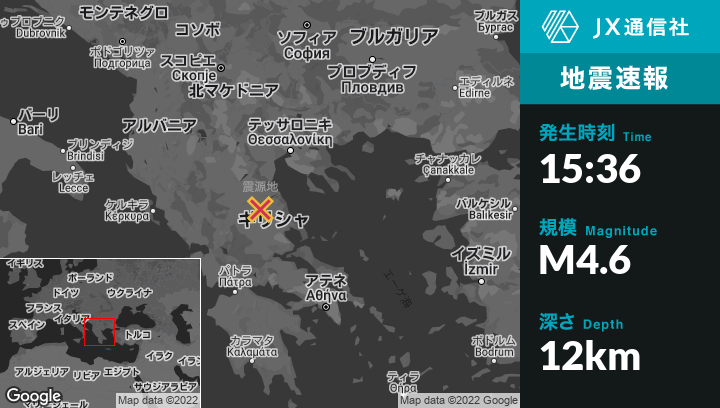 8月23日 15:36頃、ギリシャのTýrnavosから西北西0kmの地点でM4.6の地震がありました。