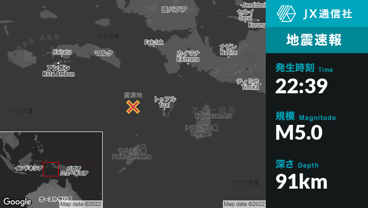 | 震源地 | インドネシアのTualから西152kmの地点 |