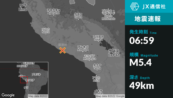 | 震源地 | ペルーのAticoから東北東24kmの地点 |