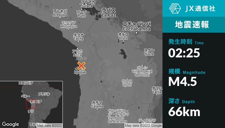 | 震源地 | チリのIquiqueから北80kmの地点 |