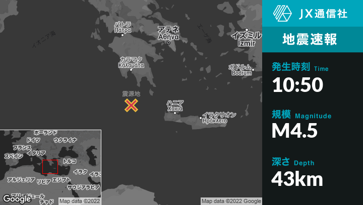 | 震源地 | ギリシャのKýthiraから西南西84kmの地点 |