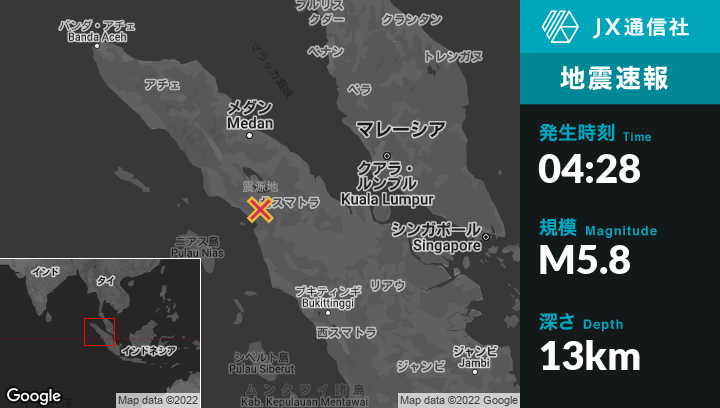 | 震源地 | インドネシアのSibolgaから北北東40kmの地点 |