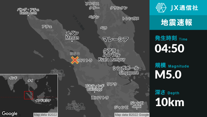 | 震源地 | インドネシアのTomok Bolonから南42kmの地点 |