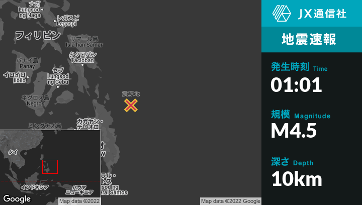 | 震源地 | フィリピンのCortesから東北東105kmの地点 |