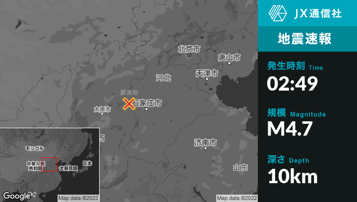 10月03日 02:49頃、中国のTianchangから北西44kmの地点でM4.7の地震がありました。