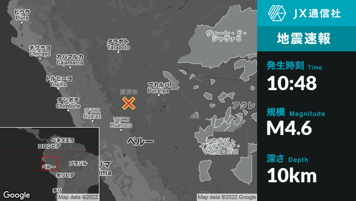 | 震源地 | ペルーのUchizaから東南東62kmの地点 |