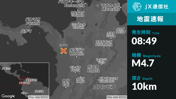 | 震源地 | コロンビアのMurindóから南東13kmの地点 |