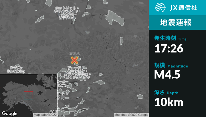 | 震源地 | カナダのDawson Cityから東北東224kmの地点 |