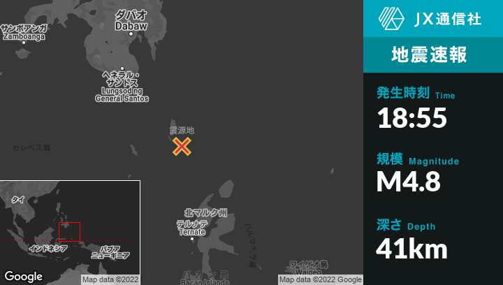| 震源地 | フィリピンのSaranganiから南東249kmの地点 |
