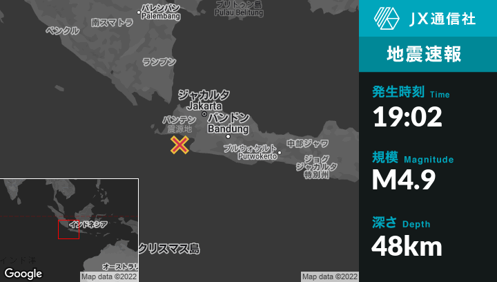 | 震源地 | インドネシアのPelabuhanratuから西54kmの地点 |