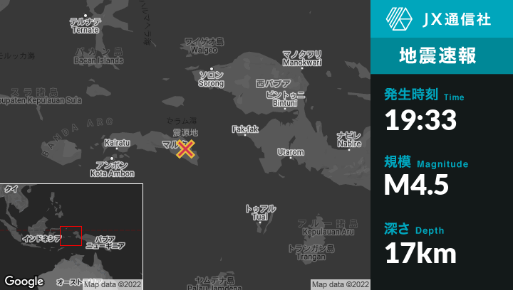 | 震源地 | インドネシアのAmahaiから東170kmの地点 |