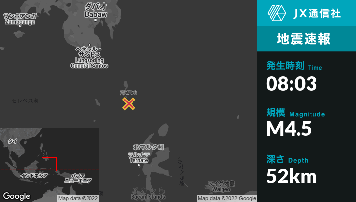 | 震源地 | インドネシアのTobeloから北北西241kmの地点 |