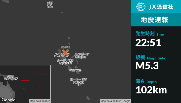 | 震源地 | バヌアツのPort-Olryから北東15kmの地点 |
