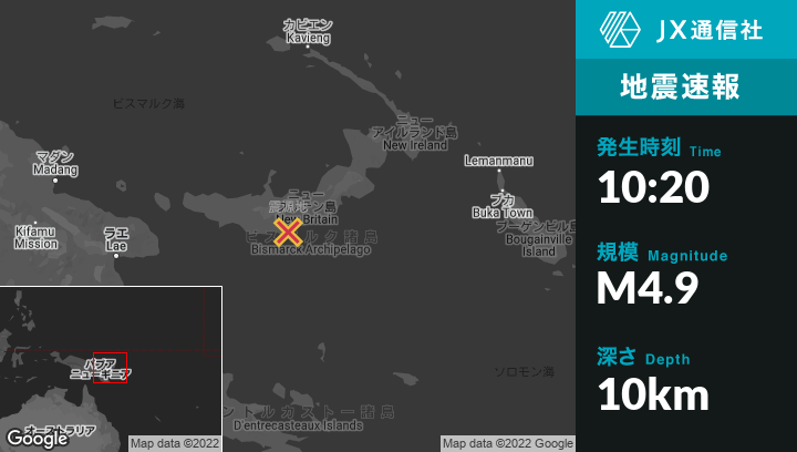 | 震源地 | パプアニューギニアのKimbeから南南東70kmの地点 |