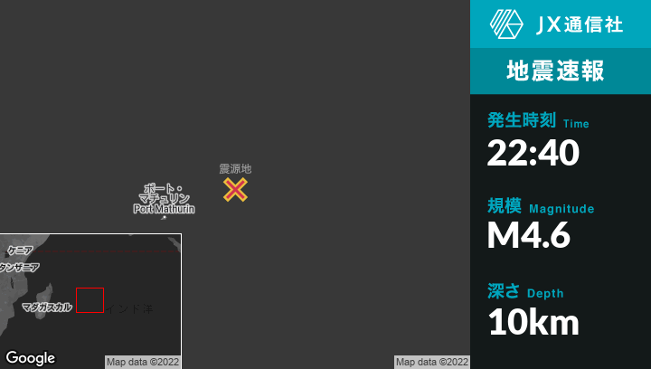 | 震源地 | モーリシャスのPort Mathurinから東北東200kmの地点 |