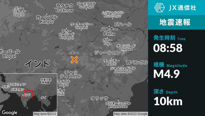 | 震源地 | インドのBaikunthpurから北西18kmの地点 |