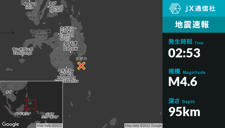 | 震源地 | フィリピンのPondaguitanから東南東4kmの地点 |