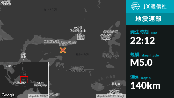 | 震源地 | インドネシアのGorontaloから南東72kmの地点 |