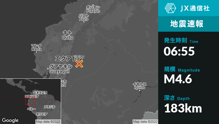 | 震源地 | エクアドルのPaloraから東36kmの地点 |