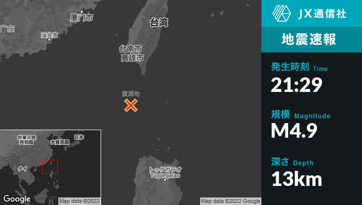 | 震源地 | 台湾のHengchunから南南西141kmの地点 |