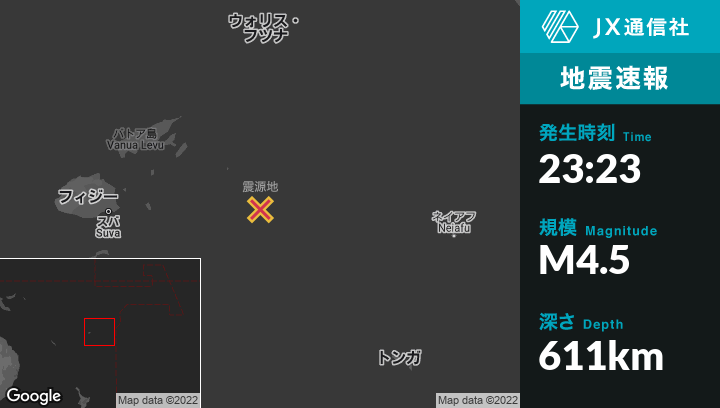| 震源地 | フィジーのLevukaから東258kmの地点 |