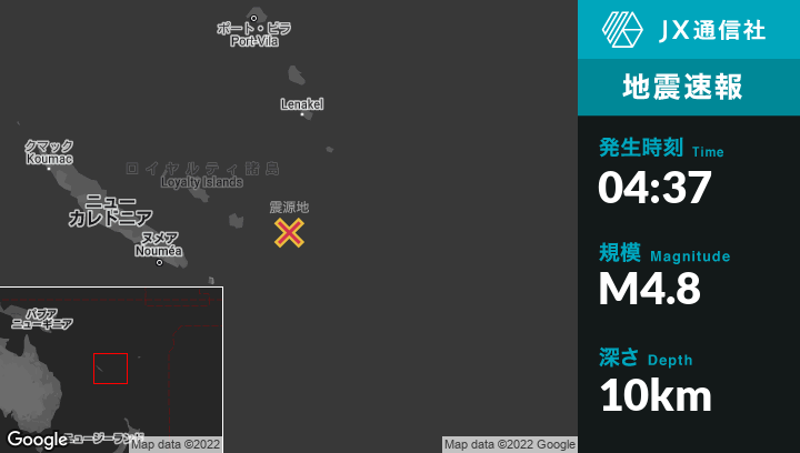 | 震源地 | ニューカレドニアのTadineから東116kmの地点 |