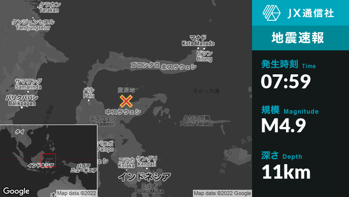 | 震源地 | インドネシアのPosoから北東111kmの地点 |