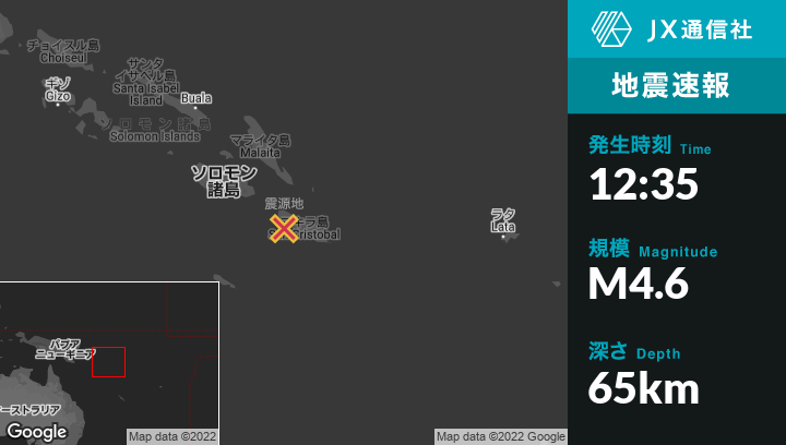 | 震源地 | ソロモン諸島のKirakiraから西57kmの地点 |