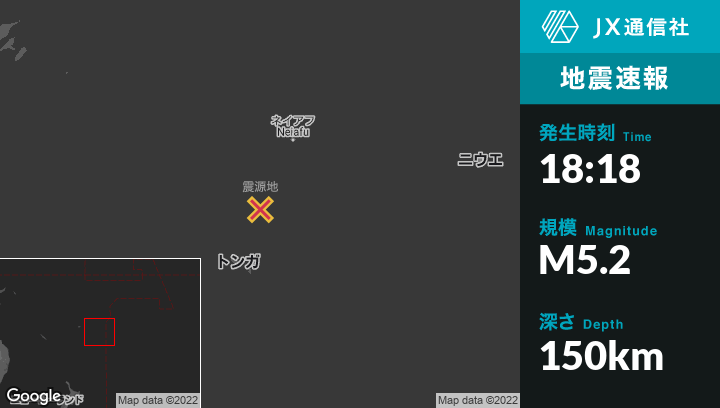 | 震源地 | トンガのPangaiから西南西40kmの地点 |