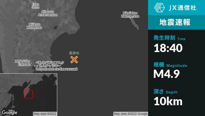 | 震源地 | ロシアのPetropavlovsk-Kamchatskyから東207kmの地点 |
