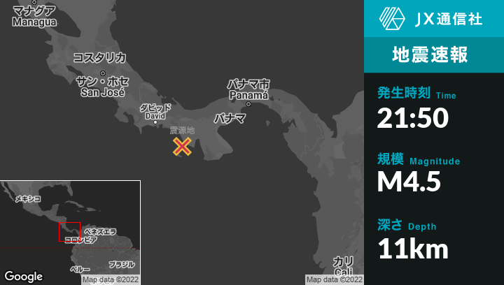 | 震源地 | パナマのZapotilloから南南西27kmの地点 |