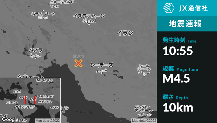 10月23日 10:55頃、イランのDogonbadanから東南東10kmの地点でM4.5の地震がありました。