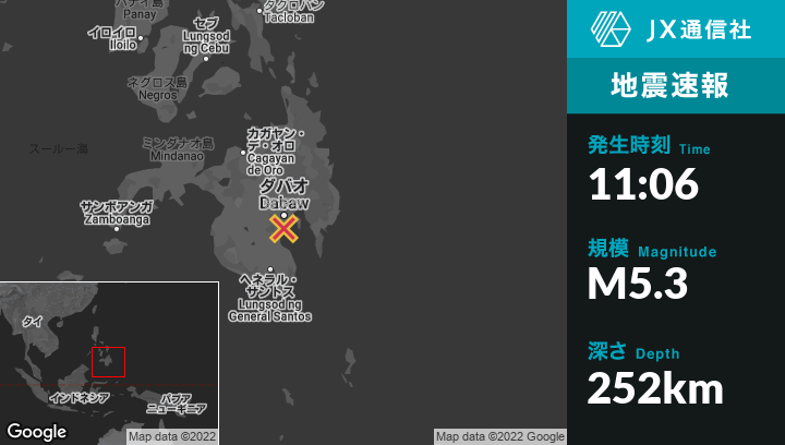 | 震源地 | フィリピンのBatoから西4kmの地点 |