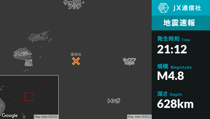 | 震源地 | フィジーのLevukaから東281kmの地点 |